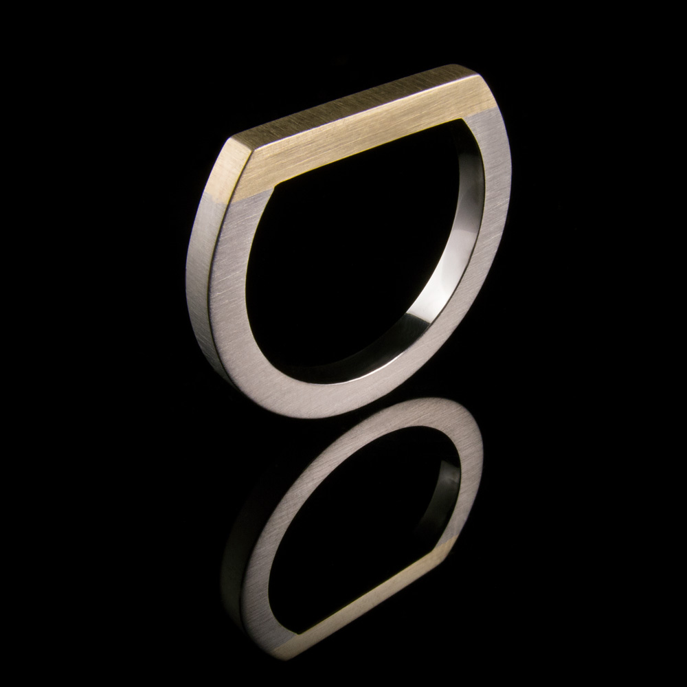 Minimalist band from the Objectivity series. Made from Palladium and 9kt yellow gold, the straight lines and brushed finish enhance the simplicity of this design.