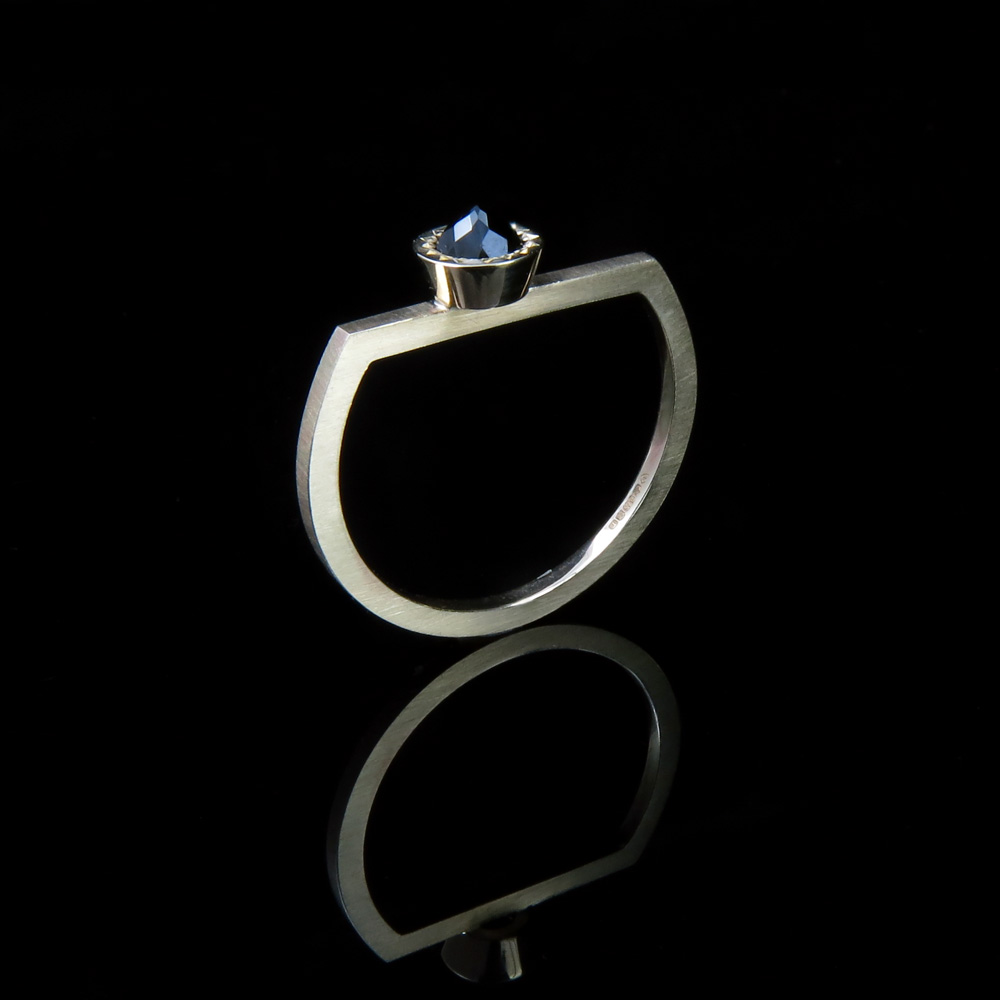 A brand new addition to the Objectivity family this ring is entirely handmade from sterling silver with an 18 ct yellow gold setting for the striking smokey quartz. The unusual cut of the quartz lets it glow from within and gives it a subtle sparkle, which is offset by the minimal, yet bold design.